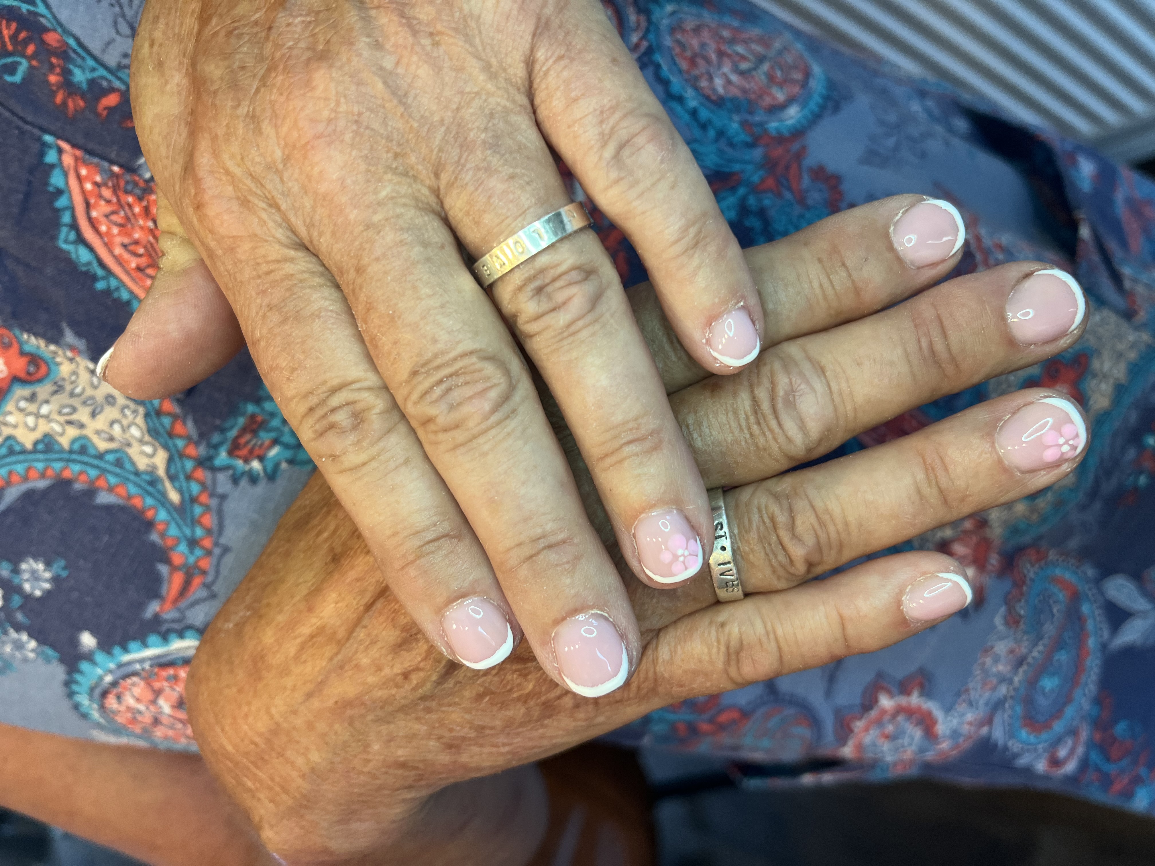 No polish — just perfectly groomed hands. Perfect for someone who can’t wear nail polish for whatever reason.